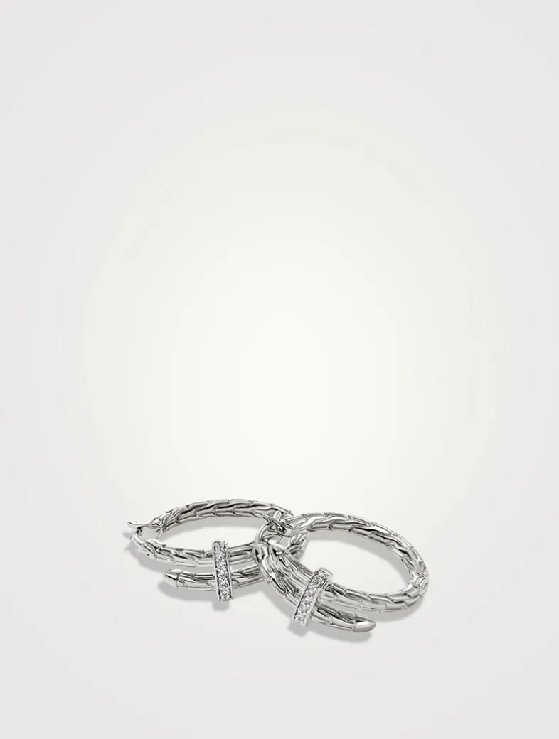 From the Spear collection, these streamlined hoop earrings feature a flex-and-thread design with diamond accents.