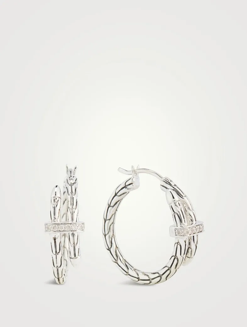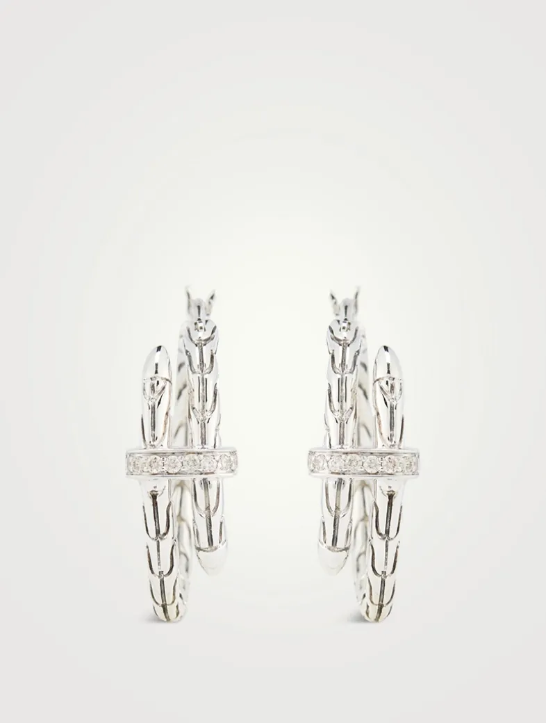 From the Spear collection, these streamlined hoop earrings feature a flex-and-thread design with diamond accents.