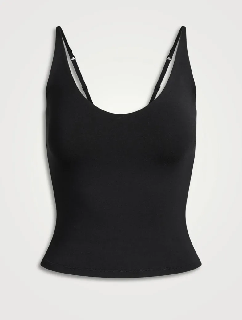 Sleek and simple. Ultra-smooth modal fabric meets SKIMS’ body-hugging fit in this scoop cami featuring an interior shelf bra and adjustable straps. Fits true to size.