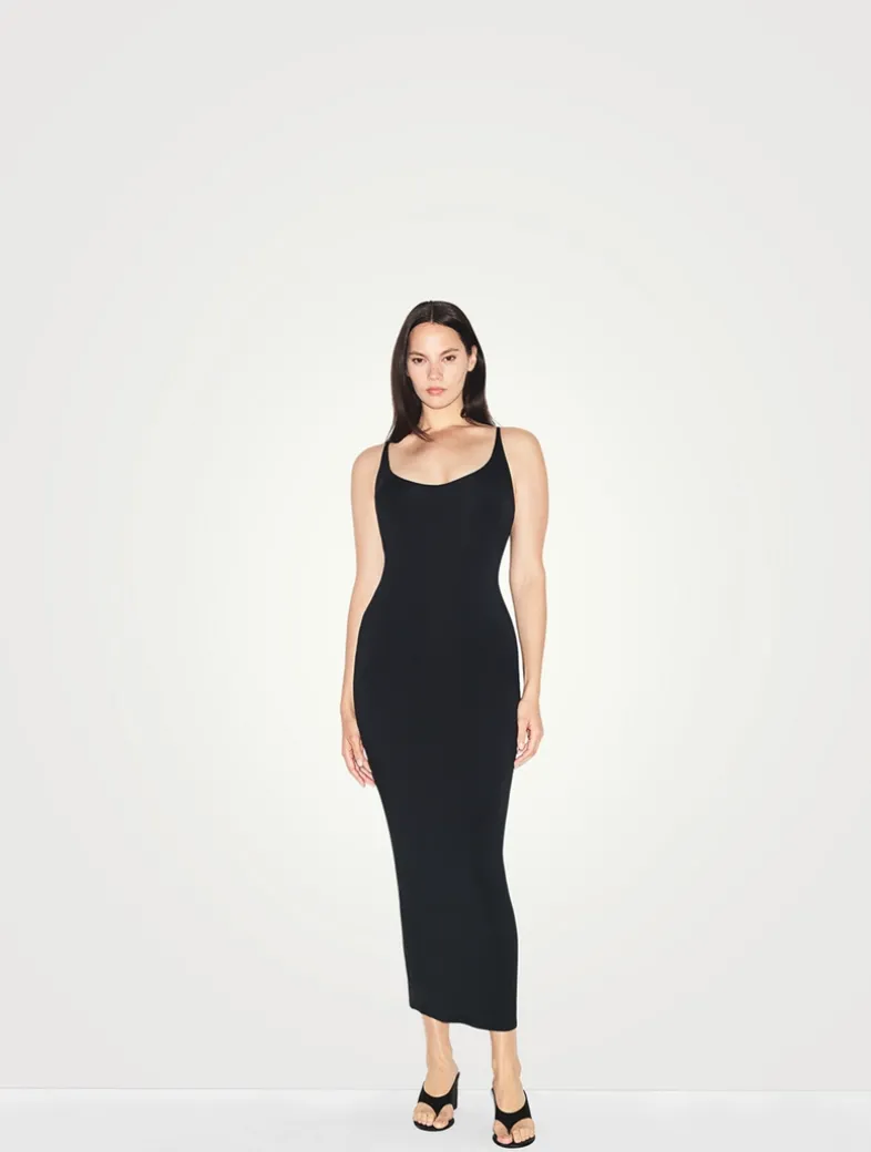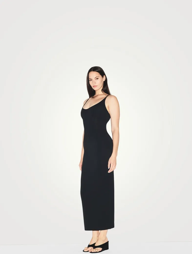 Step out and stun day to night in this relaxed-fit, scoopneck dress, made with SKIMS’ ultra-soft and smooth modal fabric. Features an interior shelf bra and adjustable straps for support. Fits true to size.