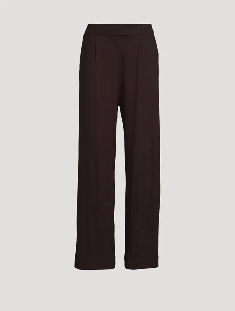 Made from a soft touch stretch fabric, these wide-leg lounge pants are designed with side pockets and a comfortable waist with front pleats for a polished look.