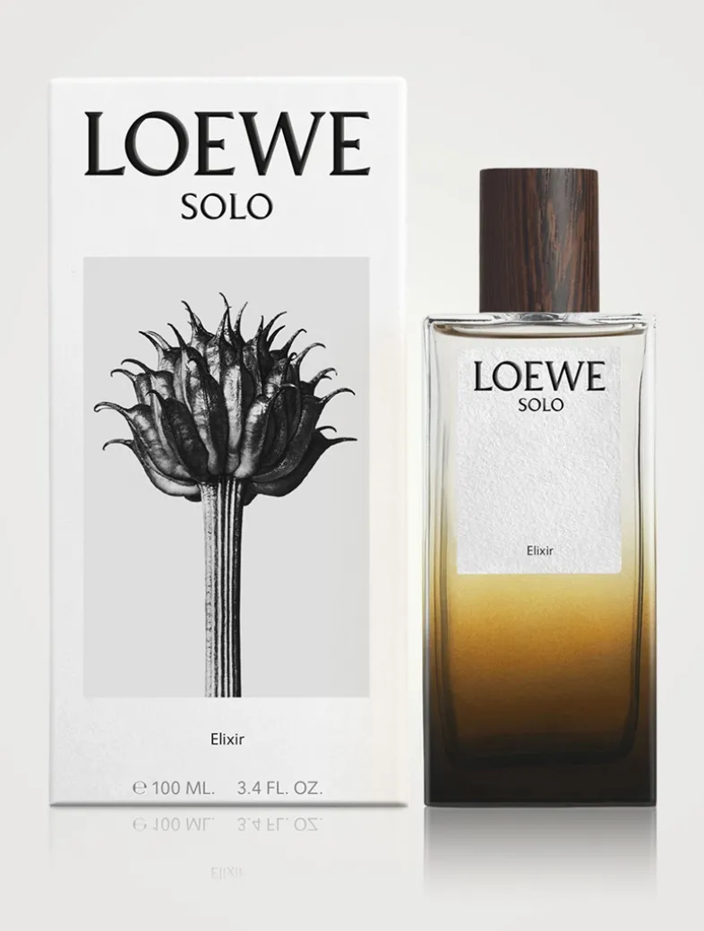 Balanced and contemporary, the unisex LOEWE Solo Elixir reinvents and enhances the original LOEWE Solo fragrance with a higher concentration of the warm yet intense benzoin, labdanum, and tarragon essential oils. LOEWE Solo Elixir unveils aromatic, floral, and amber notes of lavender, jasmine sambac, mandarin, and orris combined with spicy nutmeg, cinnamon, olibanum, and patchouli. The composition is highlighted by the rich, raw, and authentic aspects of LOEWE Accord—an exclusive note created by LOEWE’s perfumer, Nuria Cruelles, based on the complex, resinous scent of the Spanish rockrose wildflower, which embodies LOEWE’s olfactory identity.