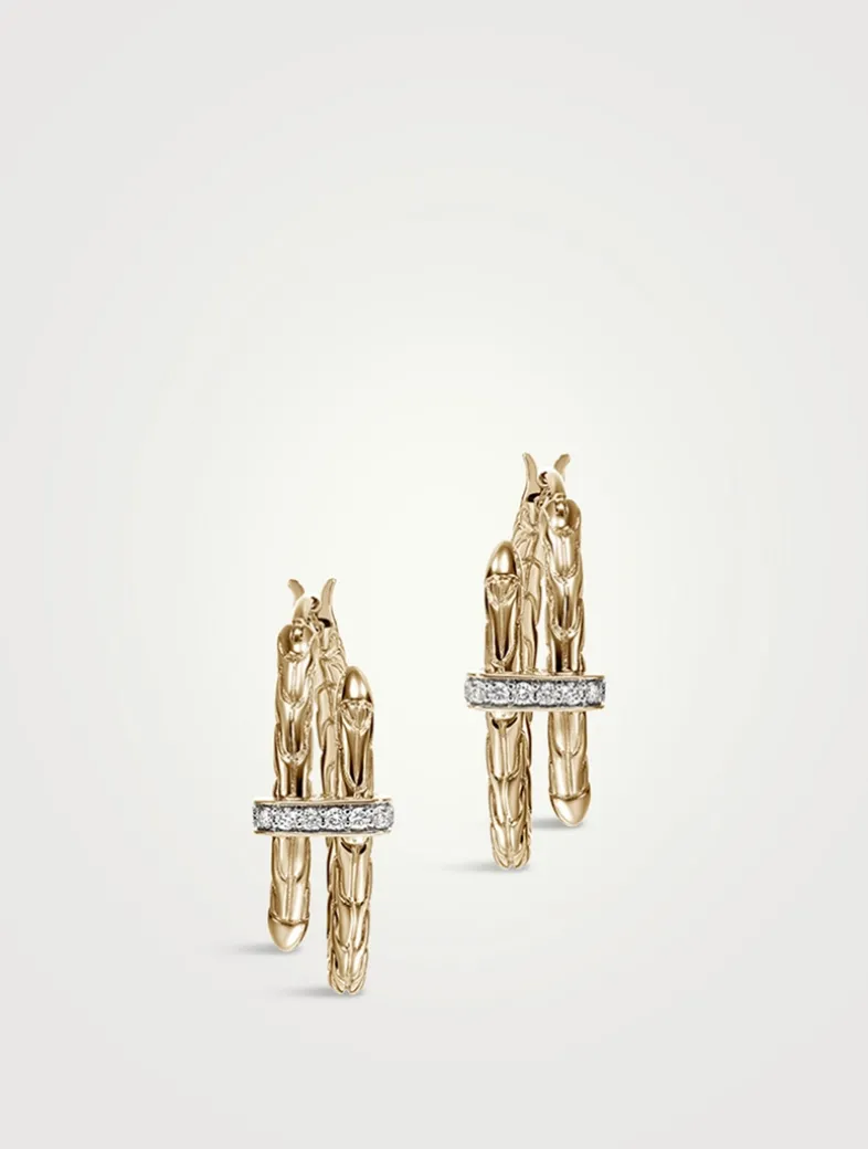 The Spear Collection is a masterful fusion of elegance and edge, flexibility and precision, artisanship and innovation. These curved spear earrings are detailed with pavé diamonds.