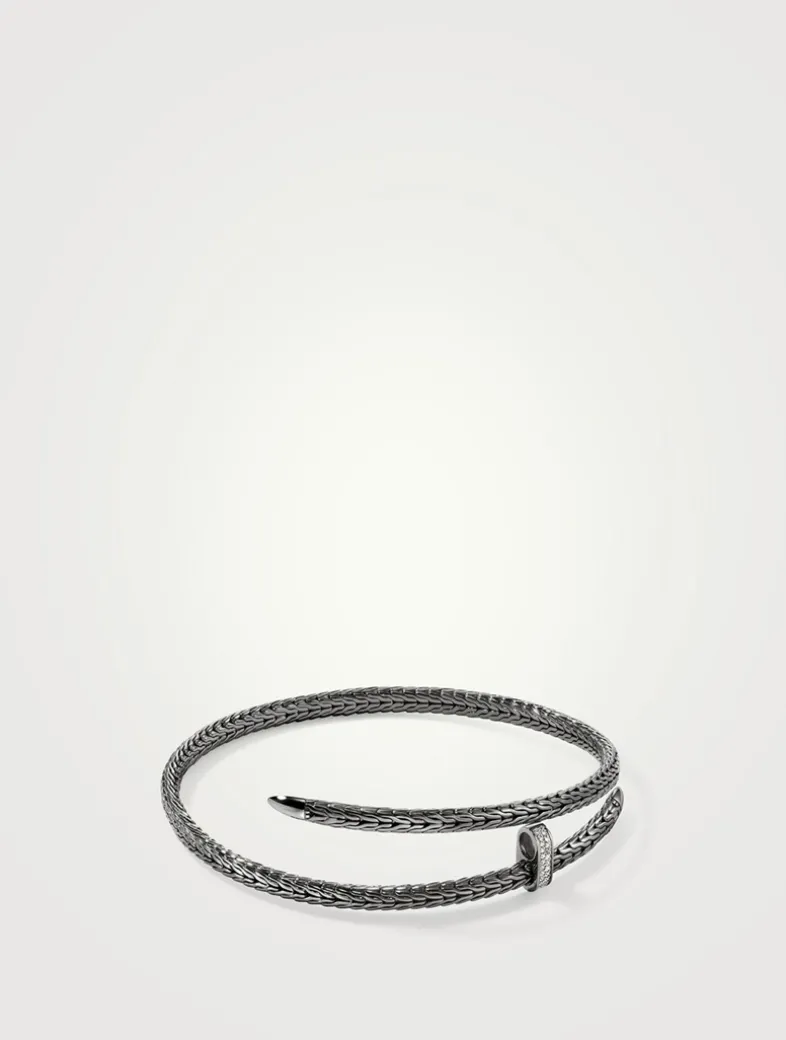 Combining elegance and edge, this streamlined coil choker is artisan handcrafted in dark silver with sparkling white diamonds.