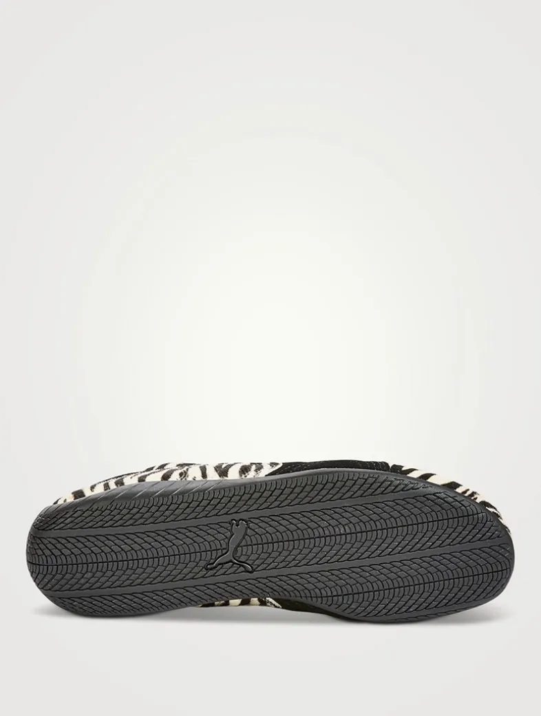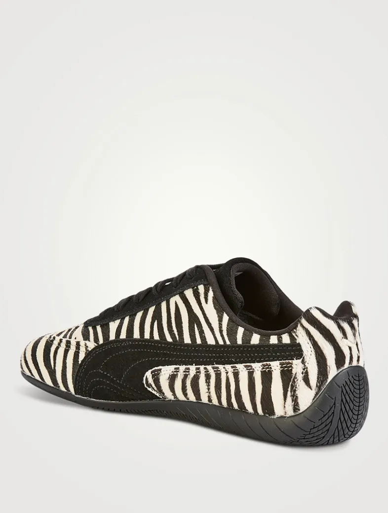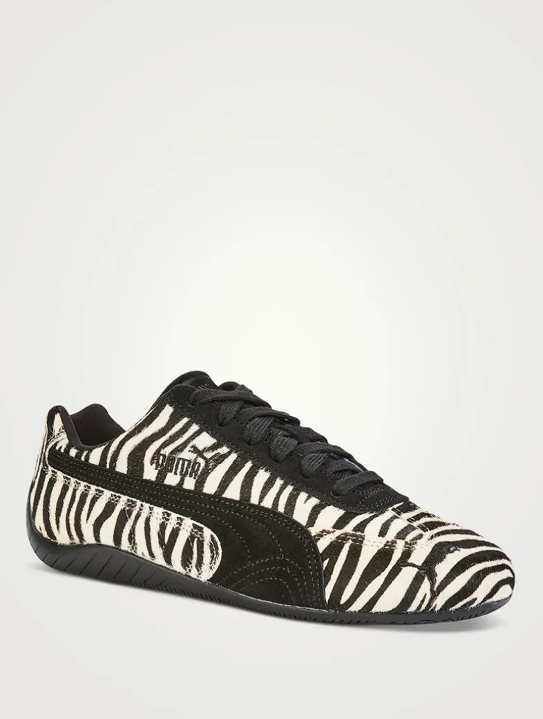 The classic Speedcat silhouette is elevated with a textured finish and a bold zebra striped print.