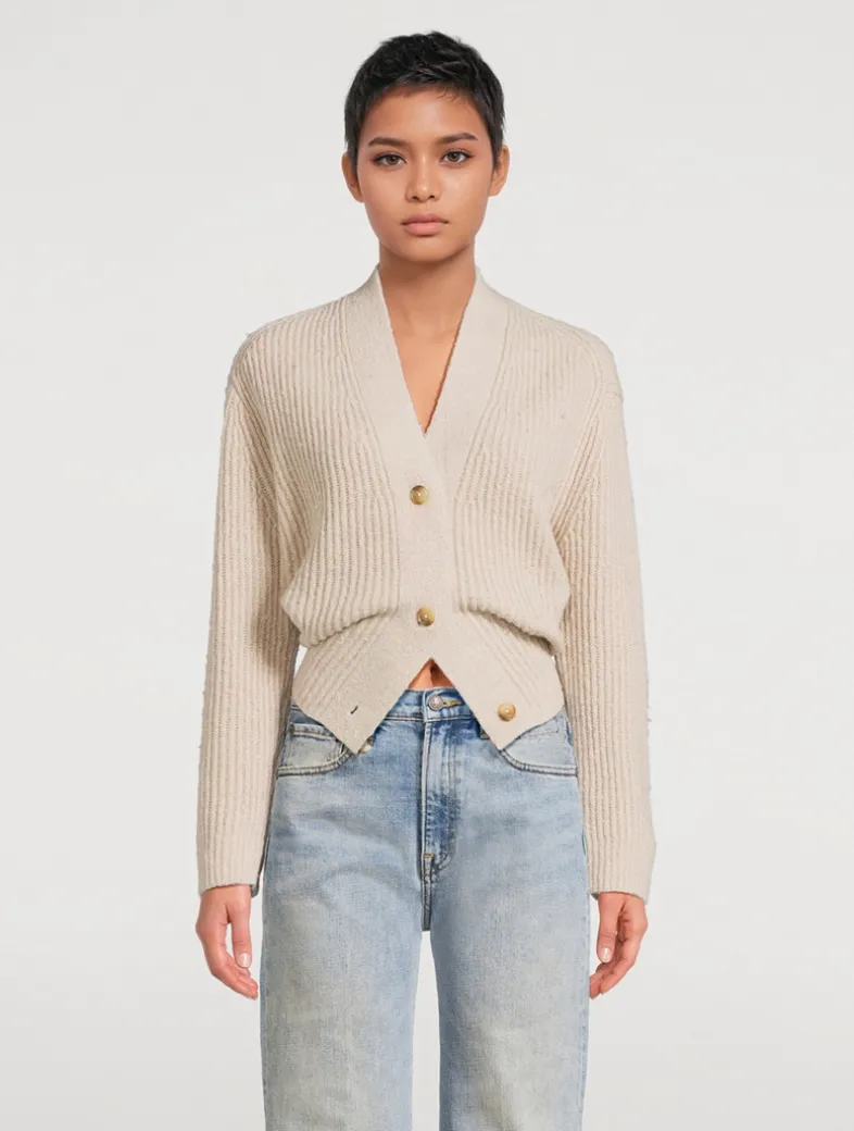 Flaunting a ribbed texture, this split-hem cardigan is built from a wool-blend fabric.