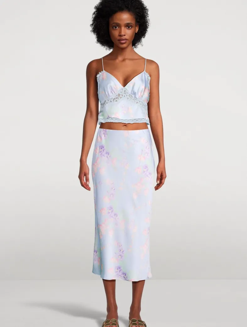 All in the details, this pretty top features a large-scale floral print amongst a medley of custom floral lace. This cami begins with a V-neckline meeting a sweet bow at the center front. The front cups have a chic ruched detailing featuring a lace panel at the underbust and sides. The piece is finished with custom lace at the hem and includes a hook-and-eye closure on the side.