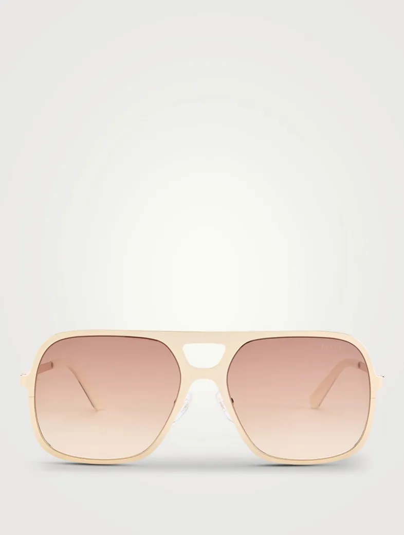 Pucci revisits the classic aviator sunglass with sleek metal frame and graphic square shape.