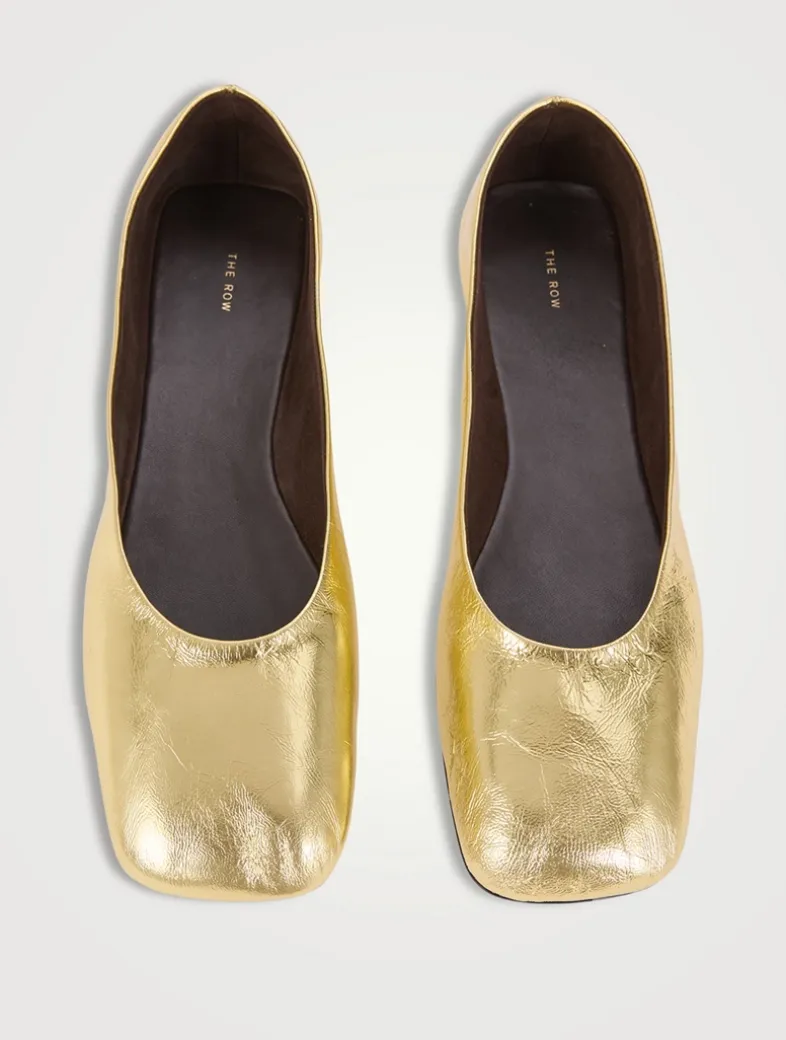 The minimalist look of these ballet flats is offset with a shimmering metallic finish. Crafted in soft lightweight leather, they are designed with a squared toe and a leather sole.