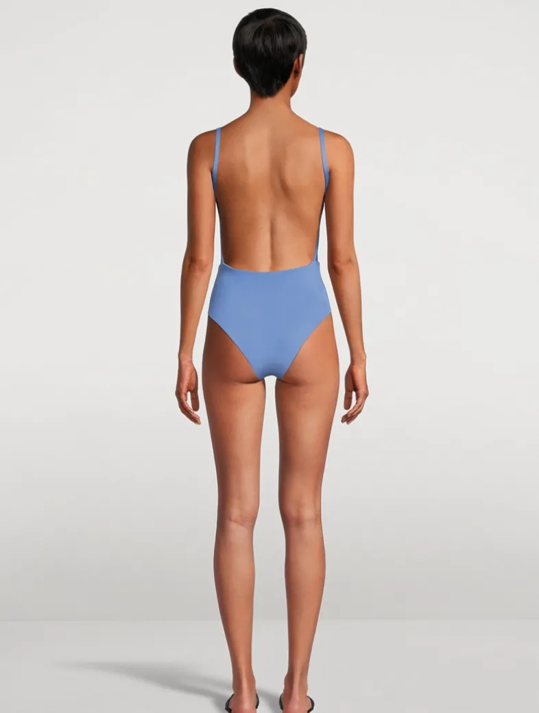 Inspired by the iconic mid-nineties sheath dress silhouette, this bathing suit features a square bust for a minimalist look. A sculpting waist seam and cheeky bottom accentuate the body, while the luxe soft fabric offers a sleek, smoothing effect with UV protection (UPF 50+) and full lining.