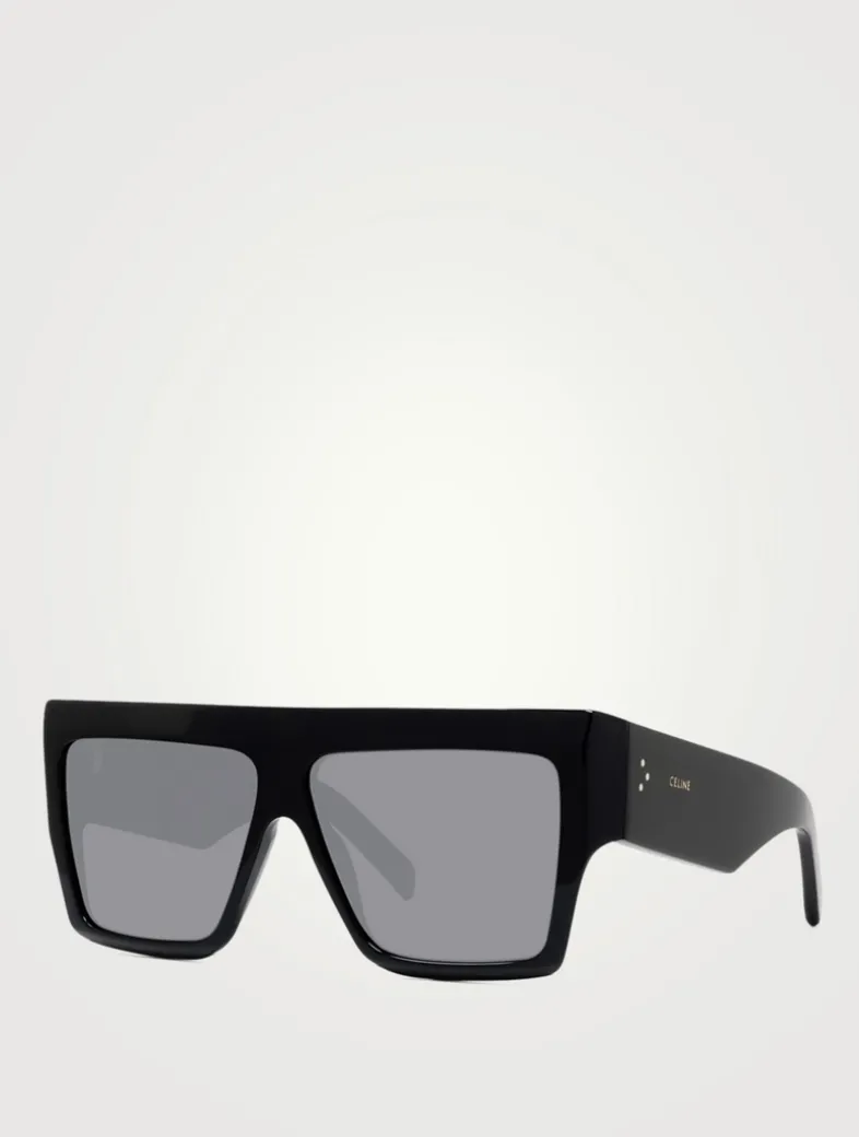 Defined by a bold, square topline, these oversized mask-like sunglasses are finished with CELINE logo lettering and the iconic three-dot detail at the temples.