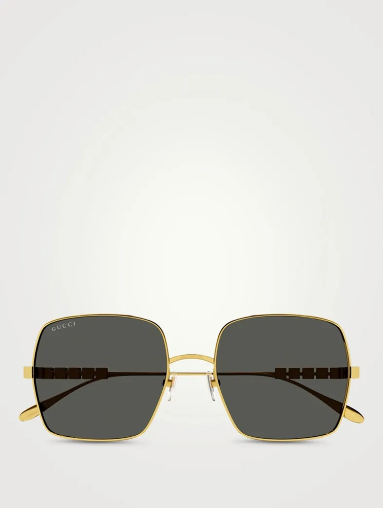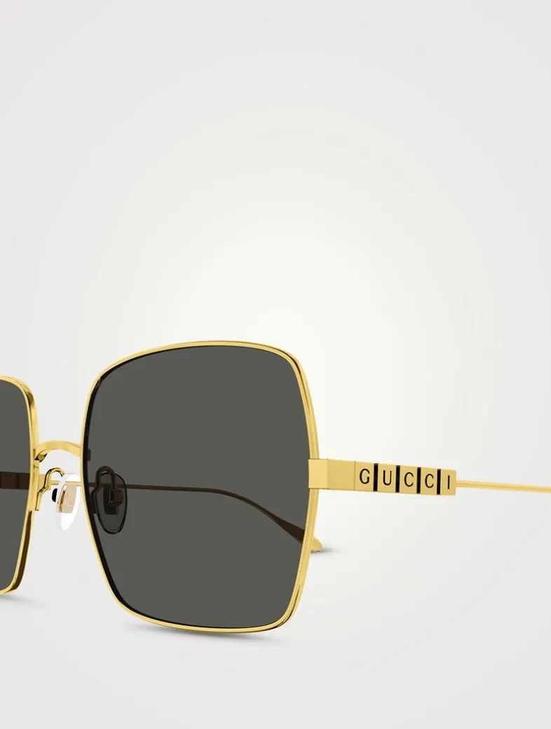 Defined by a 1970s square frame construction, these sunglasses are crafted from gold-toned metal with Gucci block lettering along the temples.