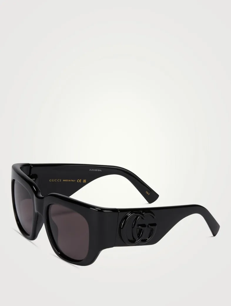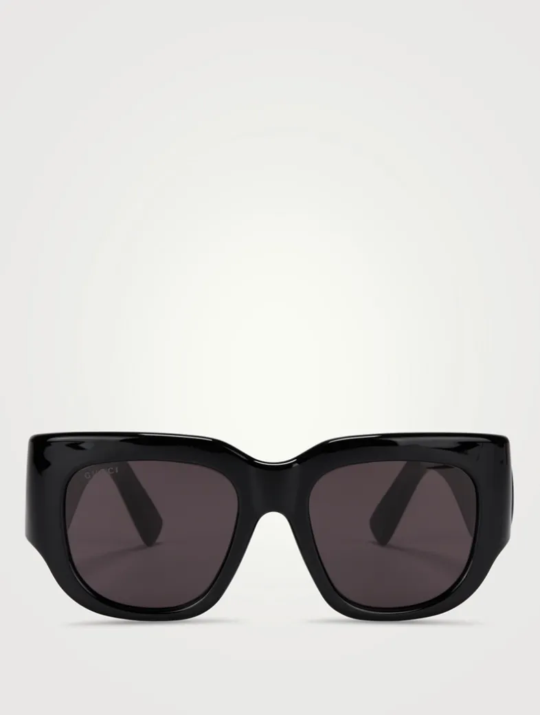 Made with a bold glossy injection frame, these square sunglasses have an oversized shape. Tonal Double G’s at the temples are a modern, signature finish.