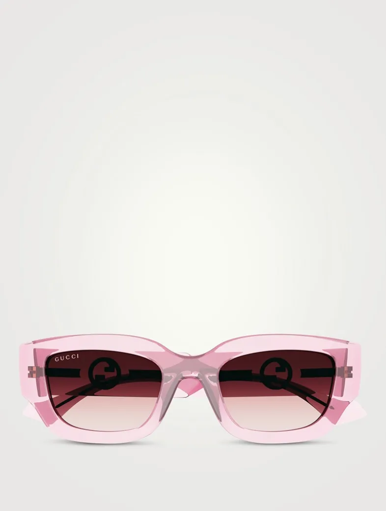 Featuring a bold injection frame with a square shape, these sunglasses are designed with exposed corewire arms and interlocking G logo temples.