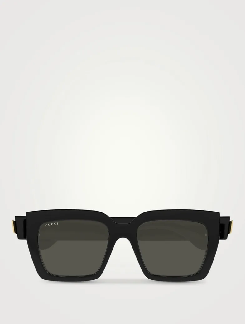 This Gucci eyewear collection combines the coveted silhouettes of bygone decades with a contemporary logo feel. These oversized square sunglasses are punctuated with Interlocking G motifs at the temples.