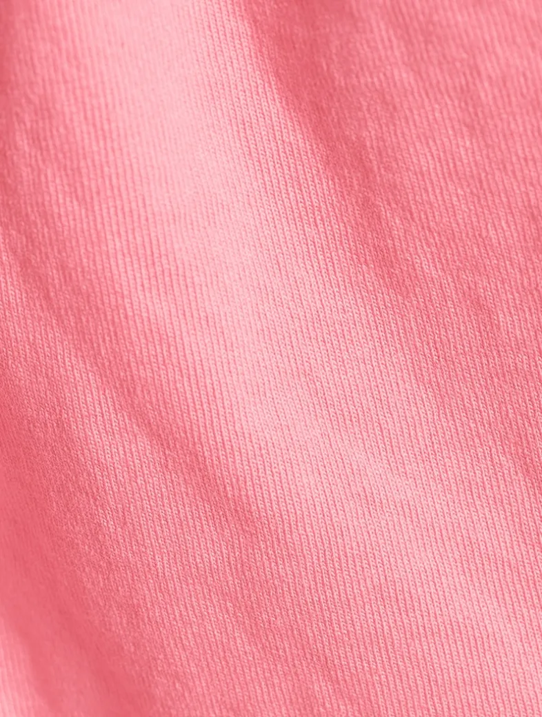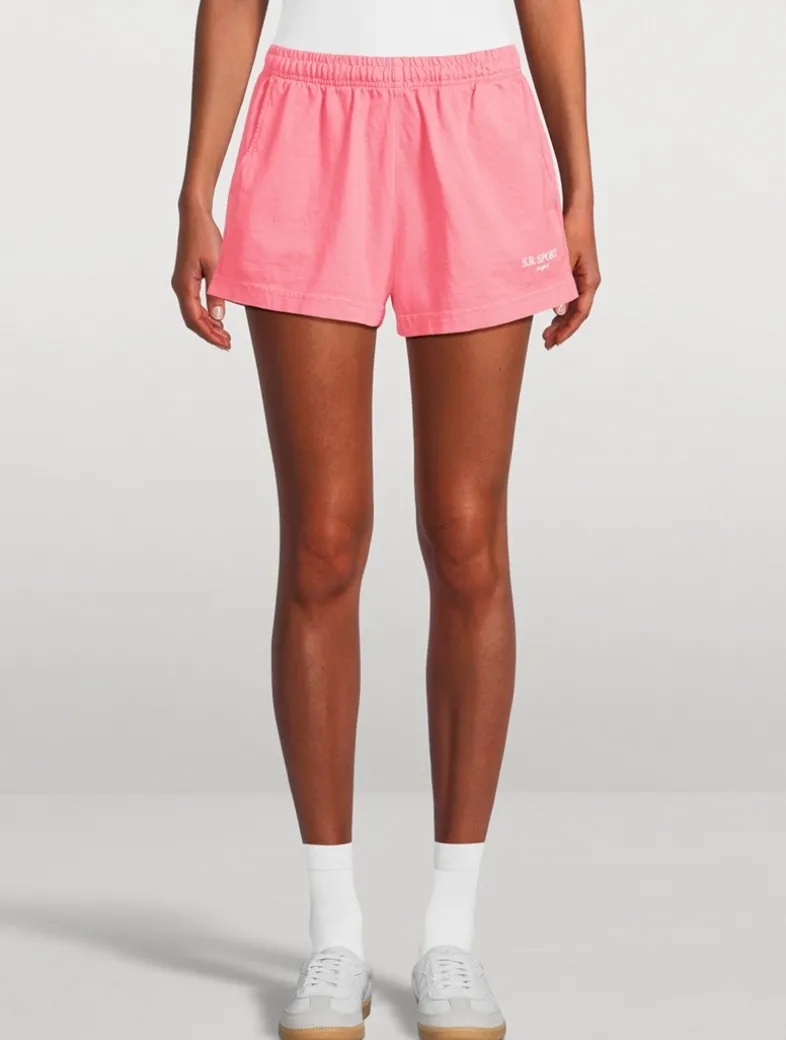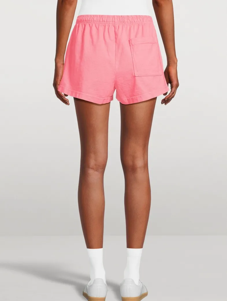 These super-short, heavy cotton jersey shorts feature an elastic waistband, two side pockets, and one back pocket. They are shrink free and garment dyed.