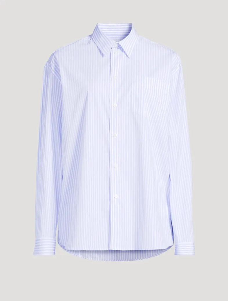 Made from 100% cotton poplin, this oversized shirt is designed with a classic collar, embroidered chest pocket, and buttoned cuffs. Sporty & Rich’ shirts are made in Portugal at one of the finest and oldest European shirt makers.