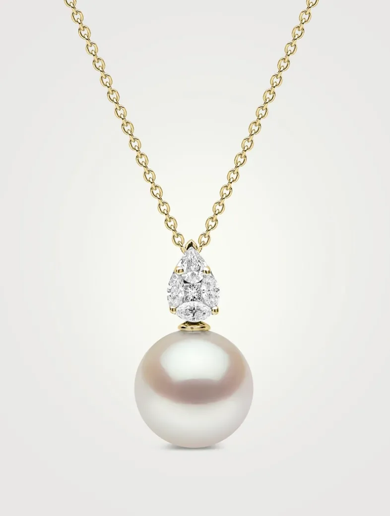 Each piece in Yoko London’s Starlight collection features delicate, alluring diamond patterns, reminiscent of the constellations that light up the night sky. This 18k gold necklace features 10-11mm South Sea pearls beneath a hypnotic arrangement of diamonds.