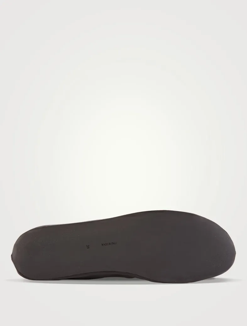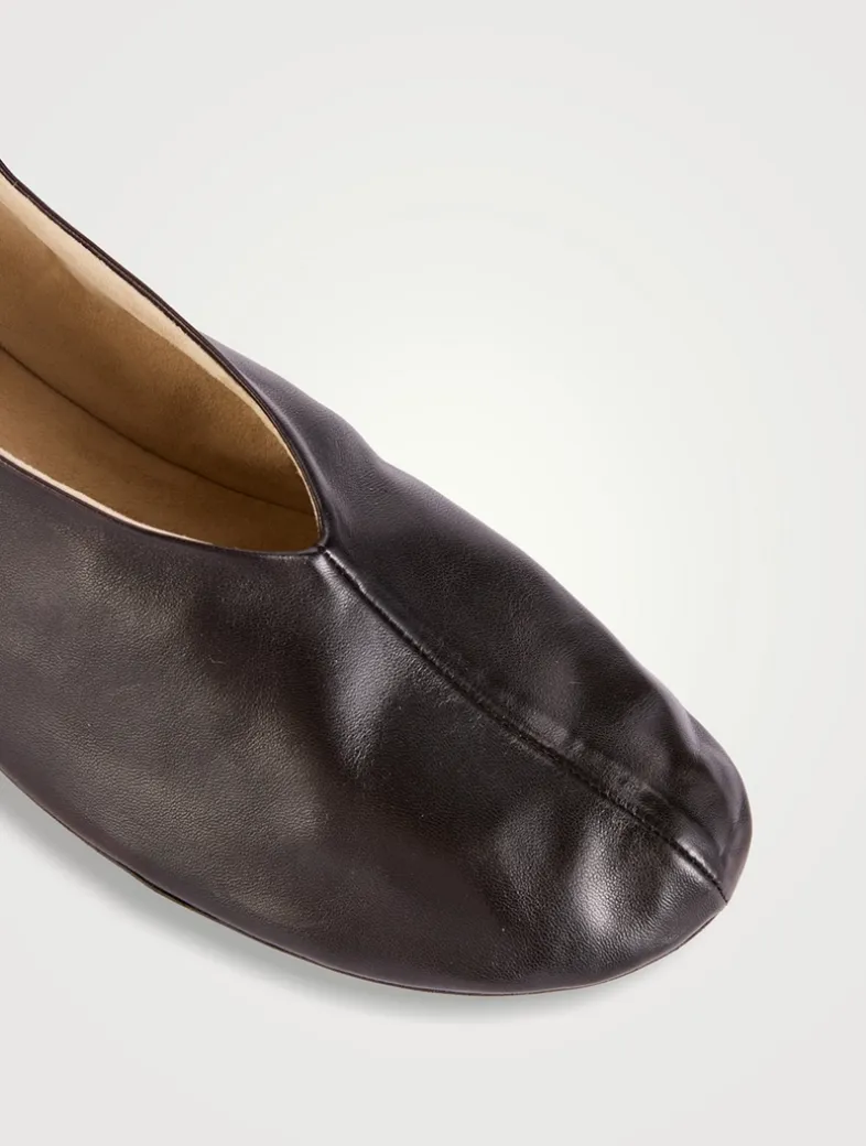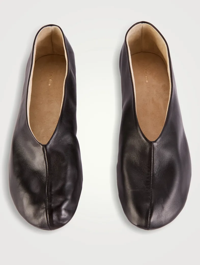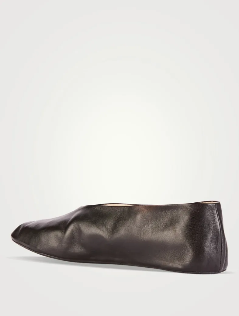 These slip-on shoes are crafted in smooth nappa leather with an oval toe, center front seam, and flexible rubber-coated sole.