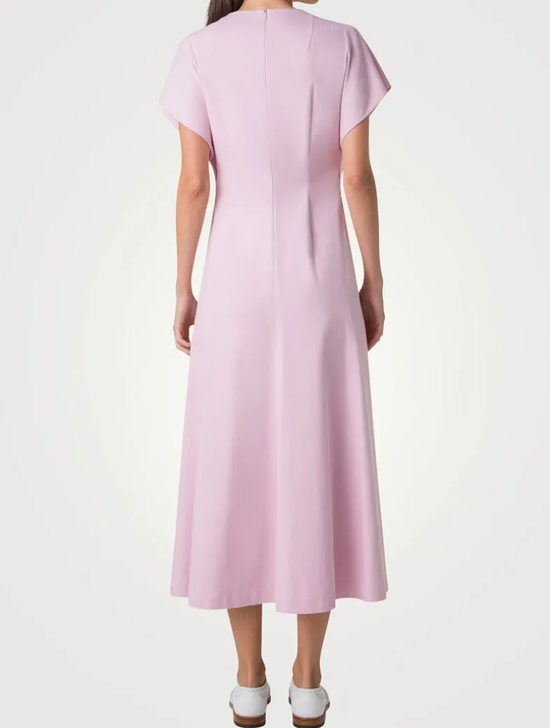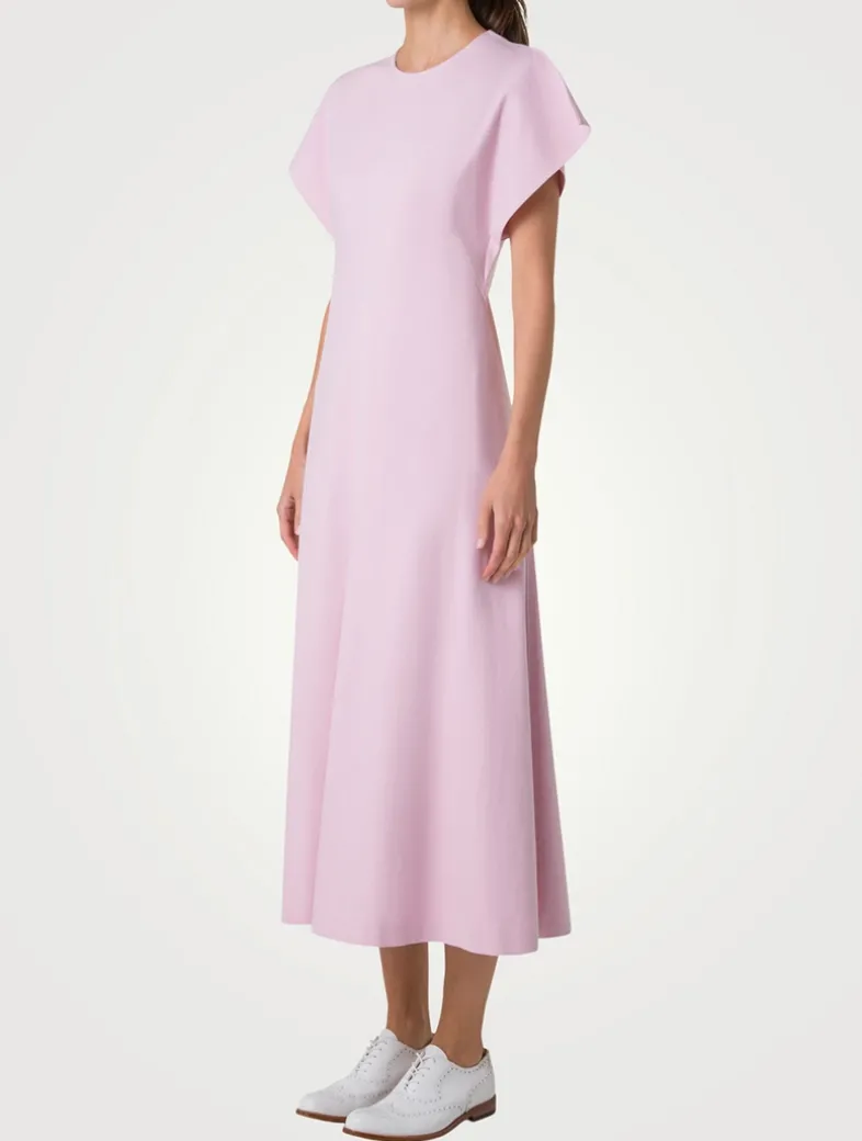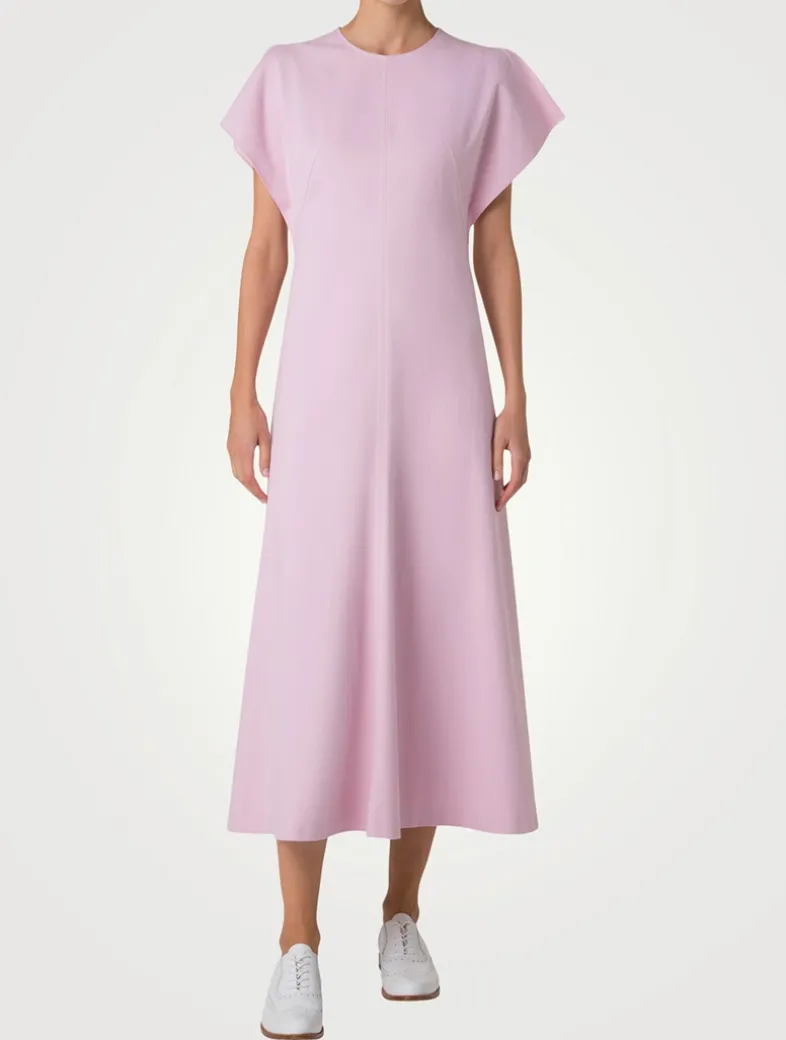 A severe silhouette blends with a casual stretch denim fabric in this Akris dress. Crafted from a cotton blend, the design features a simple round neckline and full-length seam at the front.
