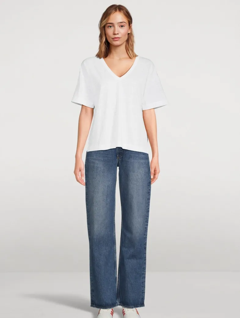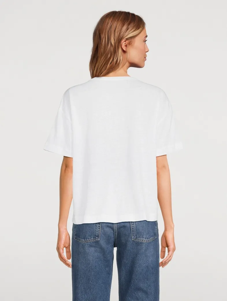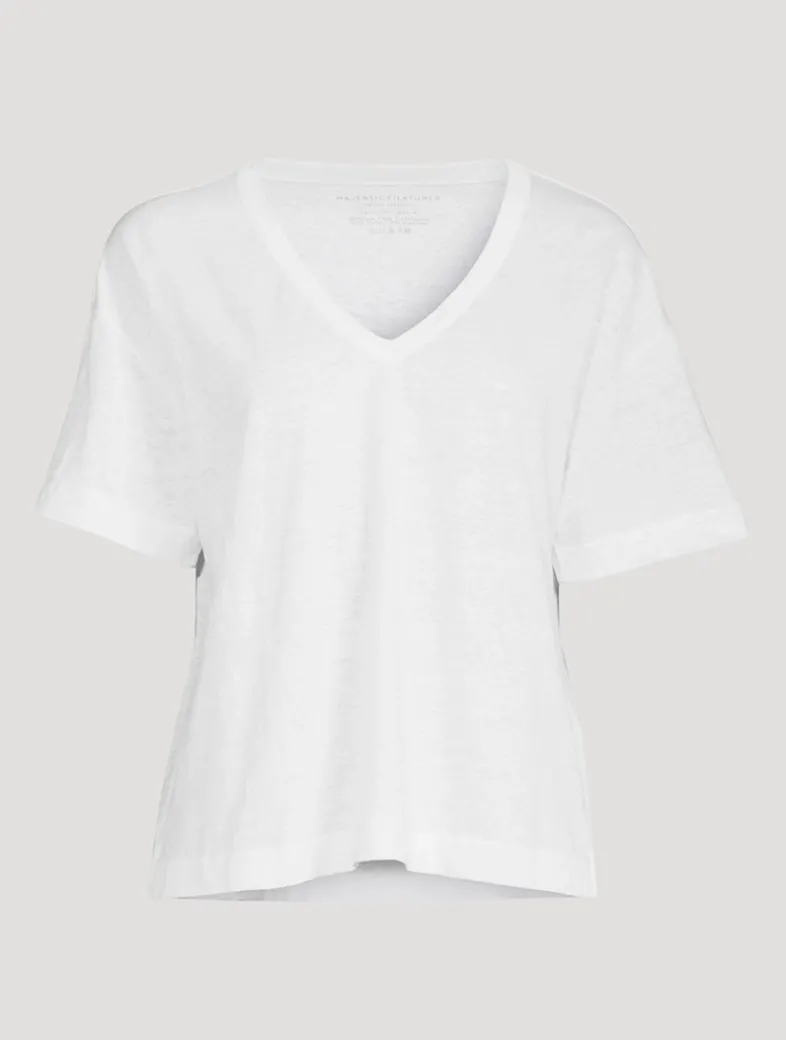 Crafted in Portugal from the finest materials, this short-sleeve V-neck T-shirt has a soft buttery handfeel and a semi-relaxed silhouette. Majestic Filatures’ stretch linen is made from European long stem line with a cool-to-the-touch finish that will never pill, stretch, fade, or wrinkle.