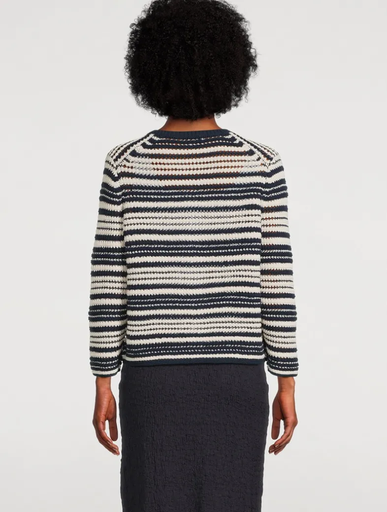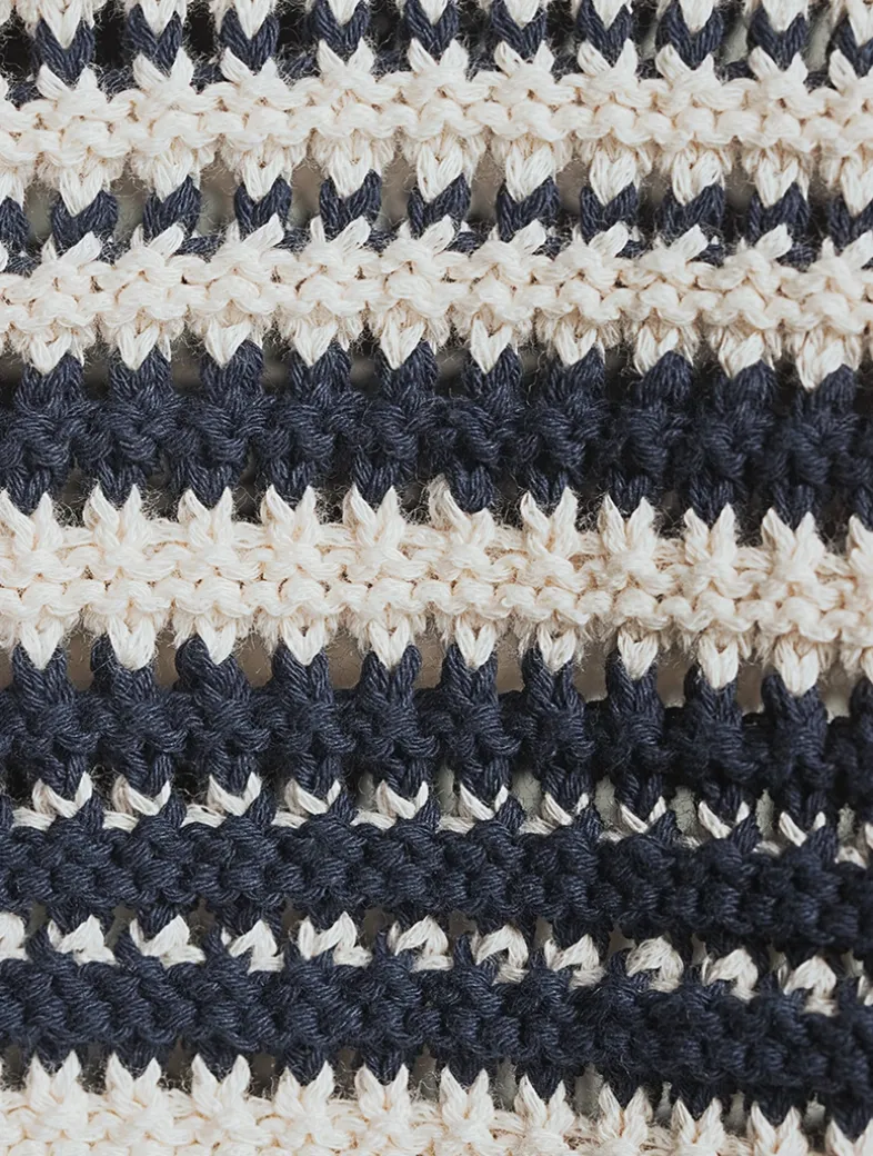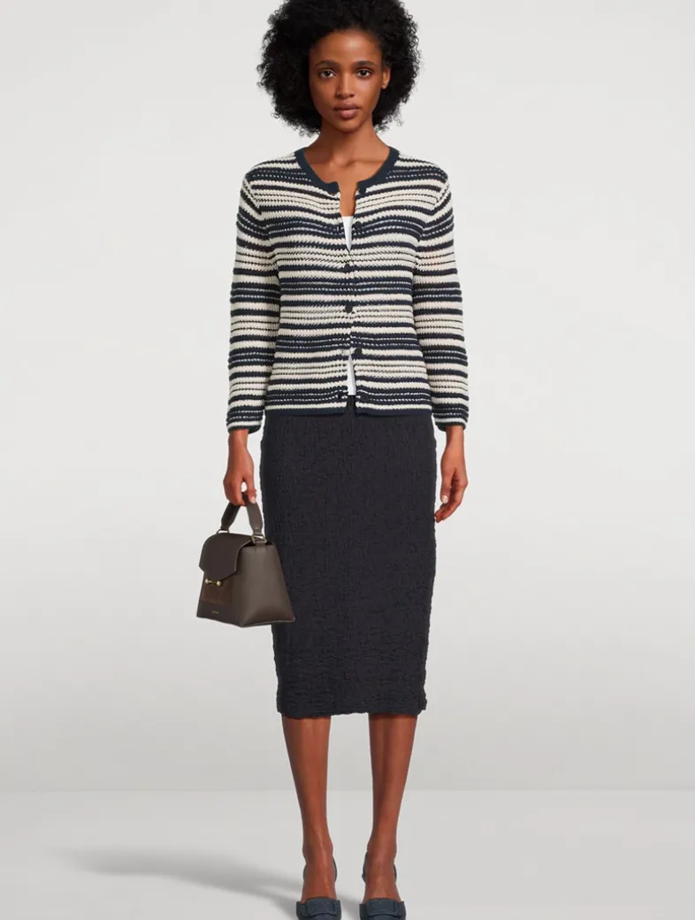 This light cardigan is knit in a textural striped pattern from Italian cotton.