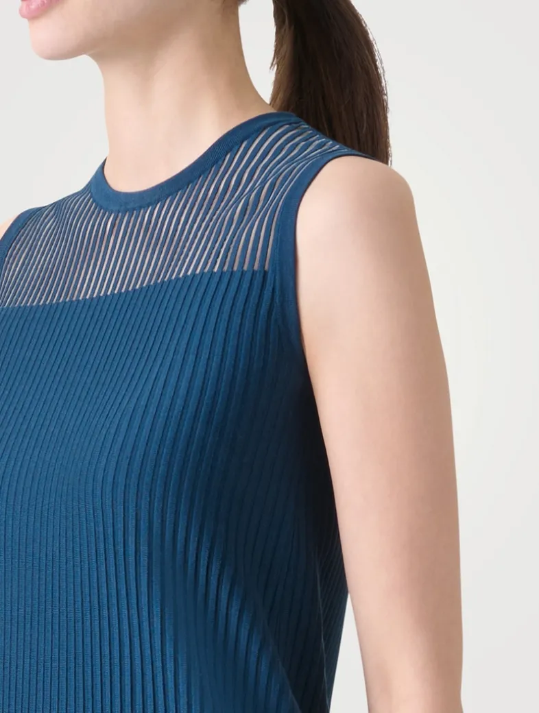 Cut to a boxy silhouette, this sleeveless mini features a rounded collar, buttoned closure at the back, and a striped motif all over. Finished with a tonal lining.