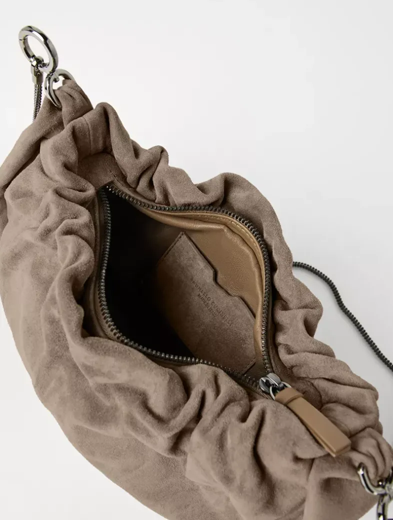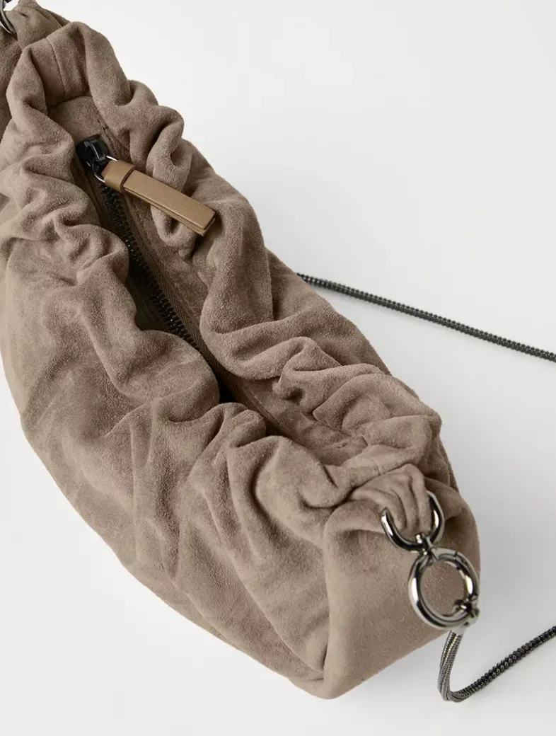 Brioche hobo bag in suede with precious chain