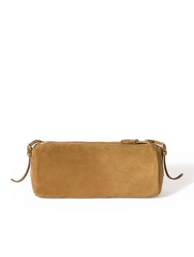Detachable, adjustable leather shoulder strap Zipper closure Waterproof linen lining Embossed lettering logo