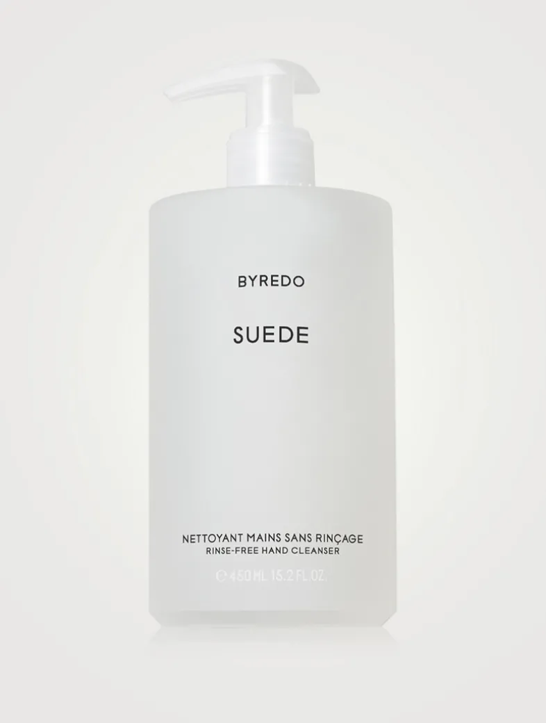 The Rinse Free Hand Cleanser delivers instant gentle cleansing and comfort, leaving hands supple and scented with Byredo’s signature fragrances. Its 59% alcohol formulation combines purifying anti-bacterial properties with high performance hydrating ingredients to prevent drying out the skin. A fusion of breezy floral notes, pear, bergamot and fresh aldehydes. Suede gently unfurls with nuances of lily of the valley and violet before settling on a bed of soft musks, smooth velvet plum, and sweet, crisp amber.