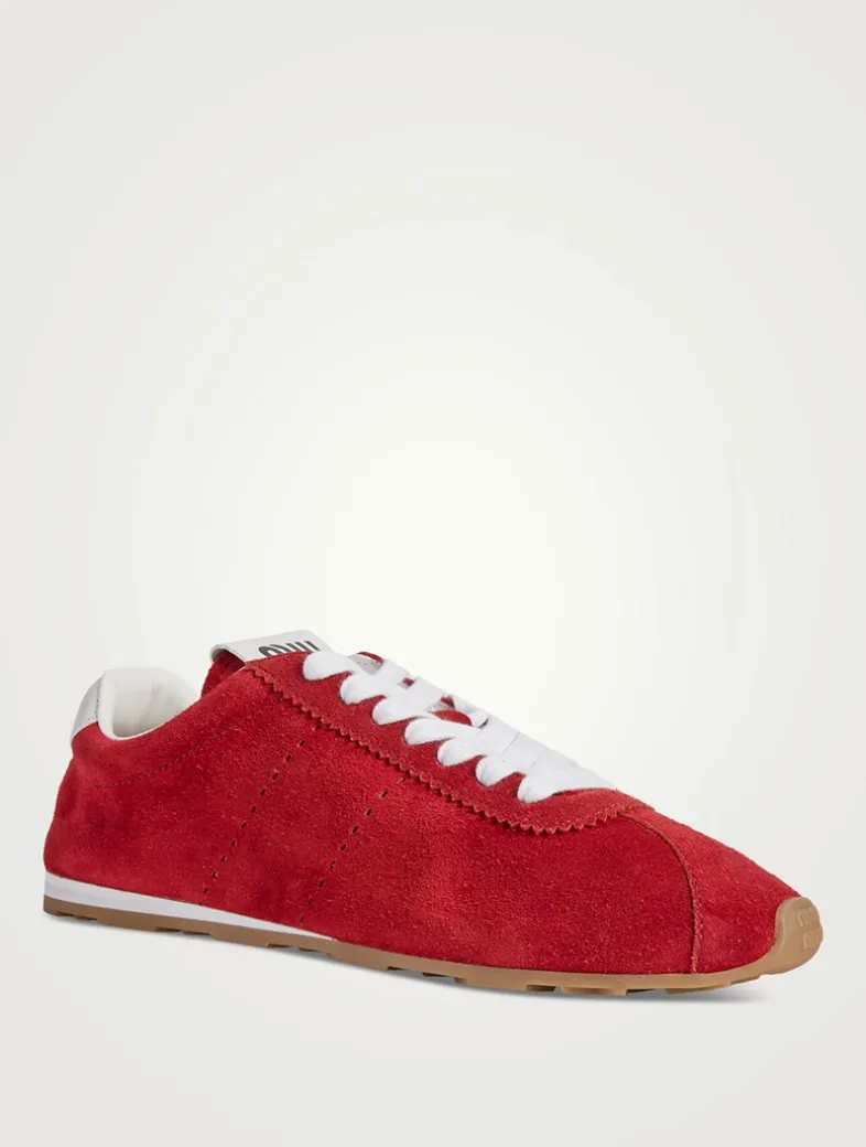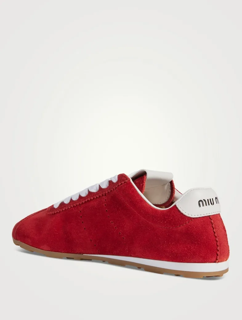 Refined workmanship and materials meet the sleek and extremely light design of these new Miu Miu suede sneakers. The logo stands out on the tongue and on the back thanks to its iconic character.