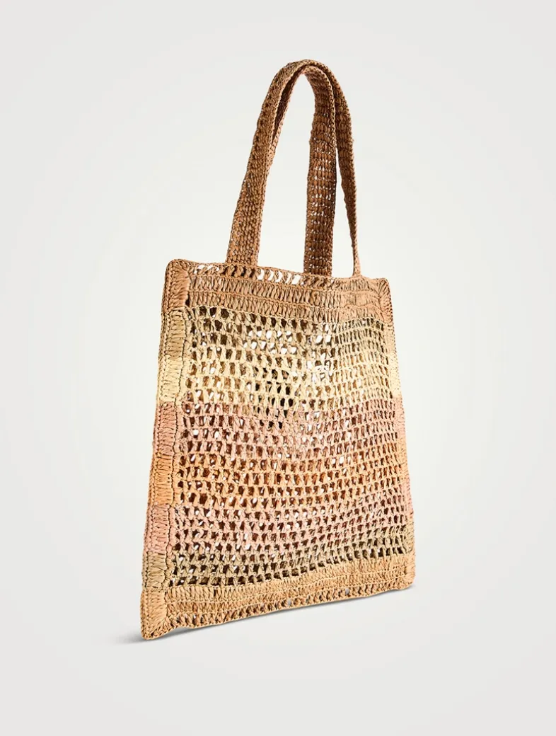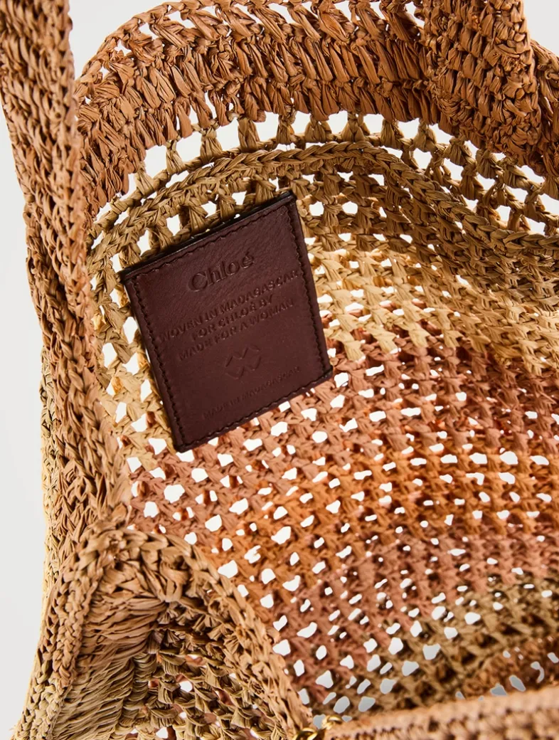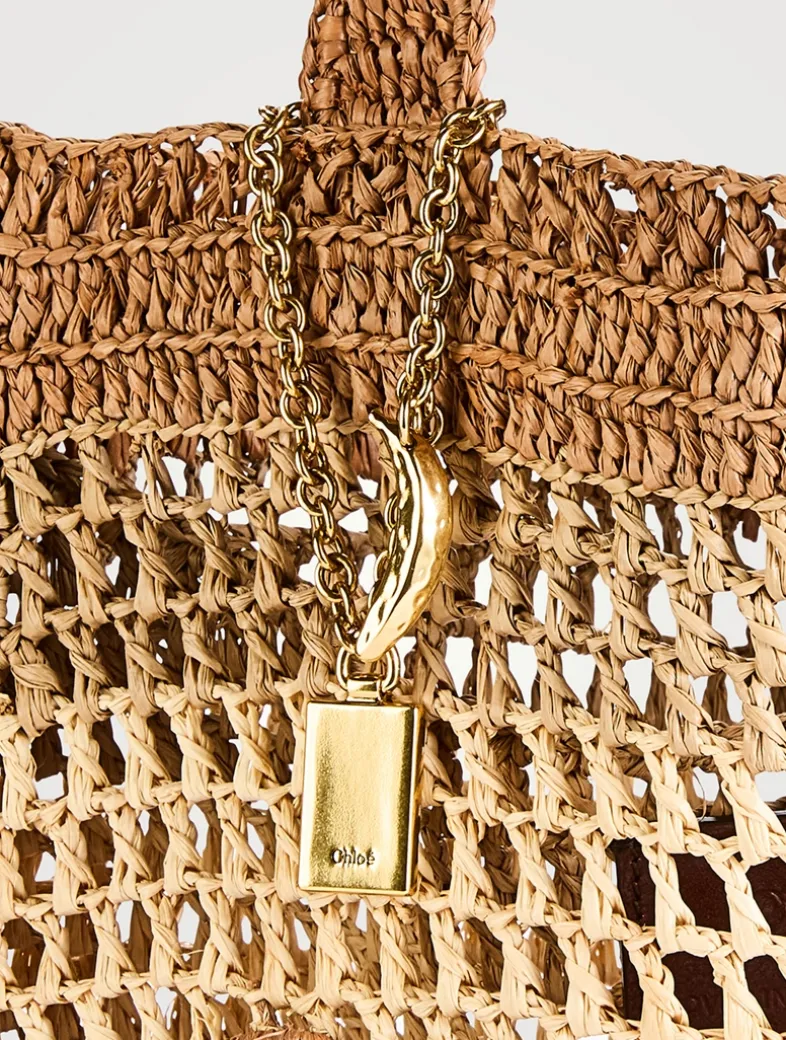 This Summer Banana tote was crafted from multicolour raffia by a single artisan over four and a half days in collaboration with Made For A Woman. The front features a handwritten signature inspired by the Chloé heritage. A dangling chain and charms finish this spacious tote. This model has been handwoven with natural fibers, so the dimensions may slightly vary from one basket to another.