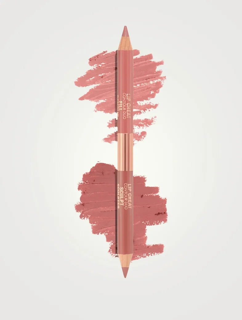 A two-in-one contour trick for fuller-looking lips, featuring two highly pigmented, blendable formulas in one easy-to-use pencil, formulated for all skin tones.