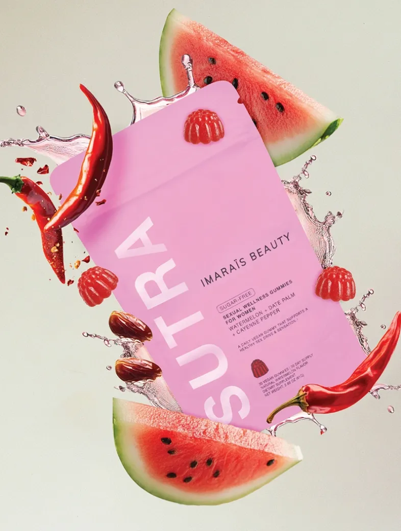 Sutra is an advanced sexual wellness supplement for women aged 18-64, designed to promote sexual arousal, enhance intimacy, and reduce anxiety using vegan ingredients like watermelon, date palm, and cayenne pepper.