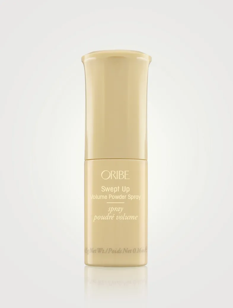 Reach new heights with Oribe’s Swept Up Volume Powder Spray. This texturizing root-lift powder instantly adds buildable grip and style. The zero-mess sprayer creates amplified updos and dramatic volume. Oribe Signature Complex (watermelon, lychee and edelweiss flower extracts) defends hair from oxidative stress, photoaging and the deterioration of natural keratin, all while protecting from drying, damaging and colour-depleting effects of the elements.