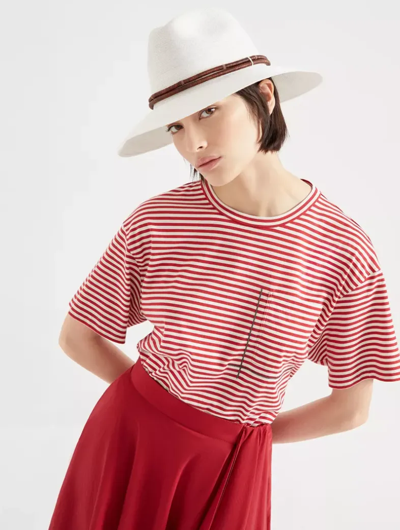 Cotton striped jersey cropped t-shirt with shiny pocket detail