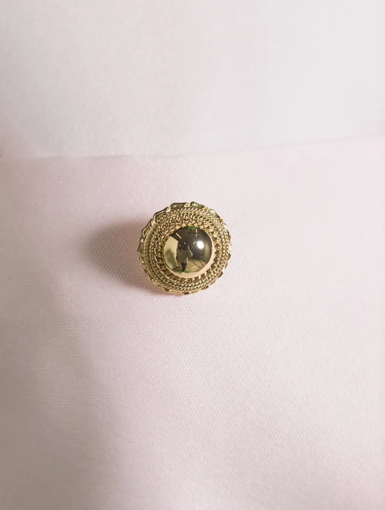 A romantic vision in pink, this taffeta midi dress defines elegance with its full skirt, dropped waistline, gold buttons, and belted waist that enhances the form; it features a fitted style with minimal stretch, a zip closure at the back, and functional chest pockets.