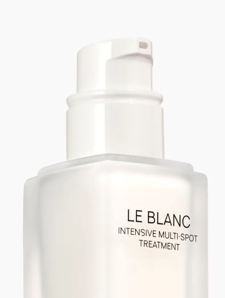LE BLANC Intensive Multi-Spot Treatment is an intensive skincare treatment that targets imperfections, diminishes the appearance of dark spots, and reduces the look of dark circles and pores. Patented CHANEL TXC™ technology, which provides targeted reduction of the appearance of dark spot, is combined with vitamin E which improves hydration and offers its smoothing and roughness-reducing benefits, and lemon balm. Skin is left looking even, luminous and with a smooth texture. The product, which features a refreshing balm texture, is fragrance-free, making it very well tolerated. Suitable for all skin types, including sensitive skin, and for use on the eye area. Dermatologist tested. Complement the virtues of this targeted treatment with LE BLANC Sérum, for comprehensive evening and illuminating benefits. Skin is prepped for LE BLANC Compact and LE BLANC Concealer.