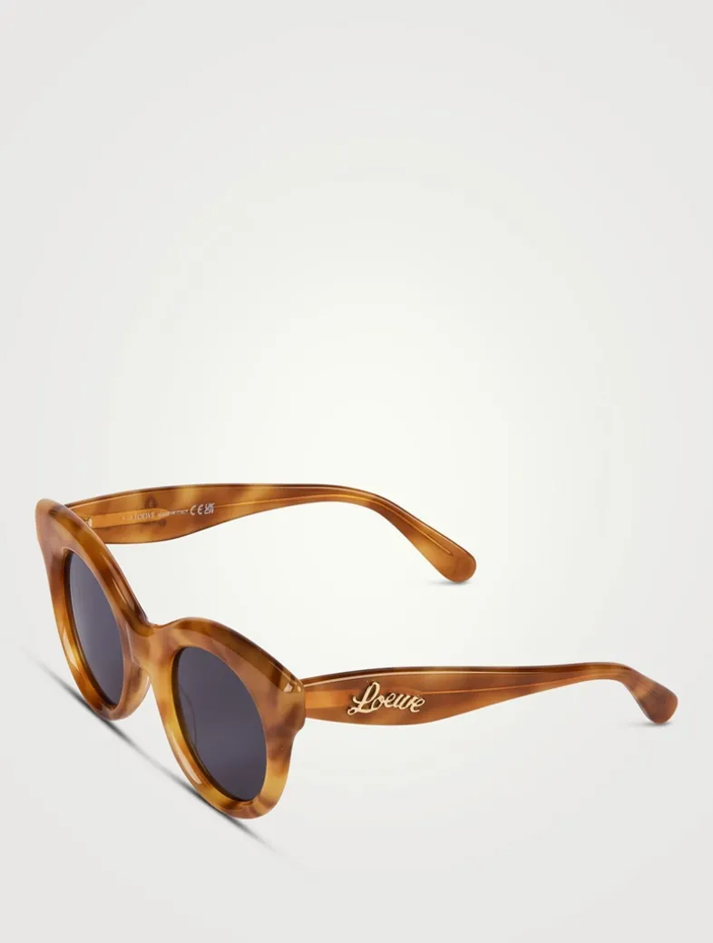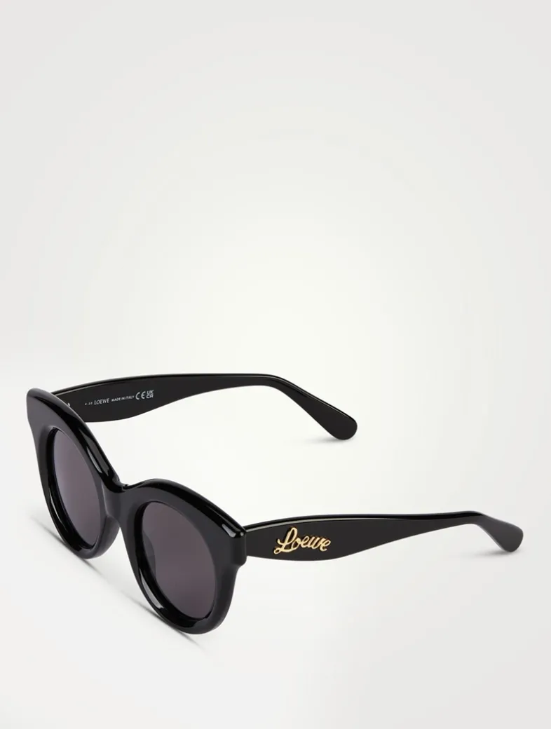 These vintage-inspired sunnies have a pantos shape with a bombé effect, featuring the Curvy Loewe signature logo on the new soft-inflated temples.