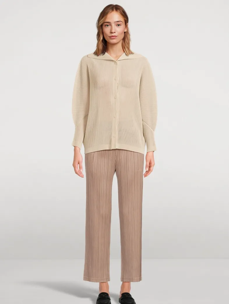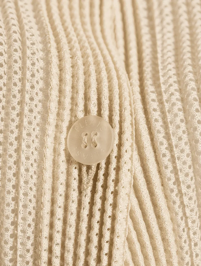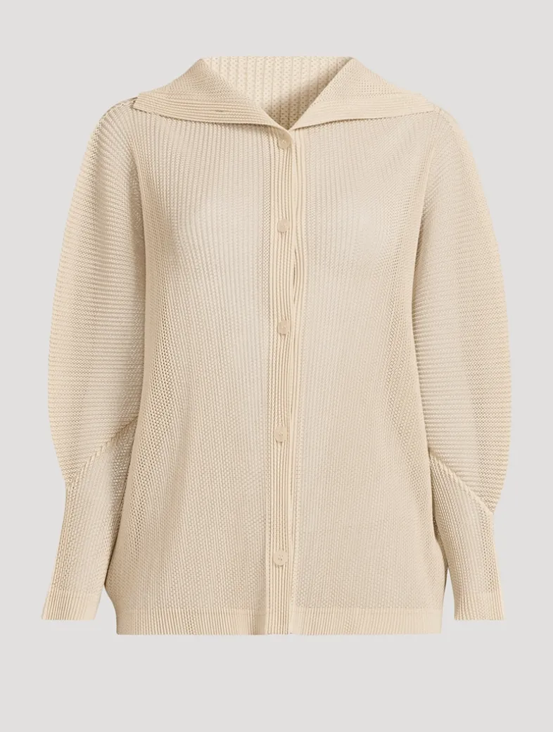 The lightweight mesh fabric of Tatami July makes it ideal for layering. This button-up cardigan has long sleeves and a spread collar.