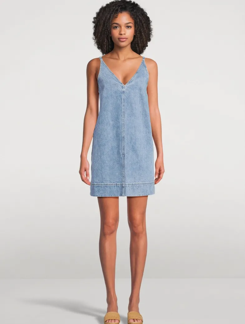 Crafted in rigid denim, this mini dress offers a flattering V-neck and the everyday convenience of pockets. It’s the simple pleasure of a one-and-done outfit that lets you focus on enjoying the warmth with that timeless denim feel.