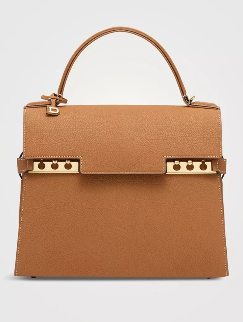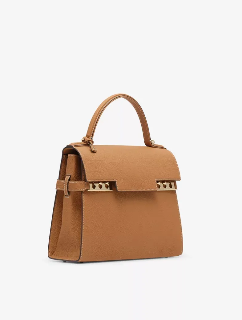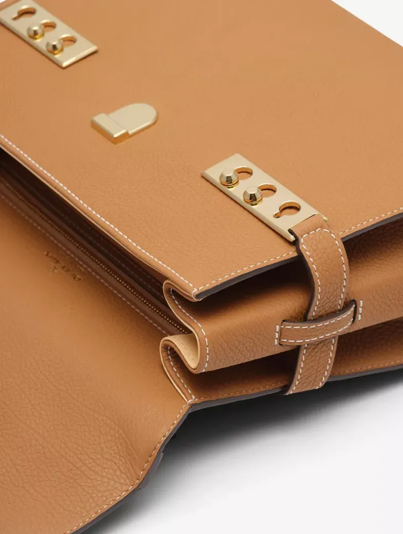 Spacious, sculptural bag featuring a removable and adjustable shoulder strap. Crafted in Crispy Calf leather in Vegetal and Ivory. Finished with gold metal hardware.