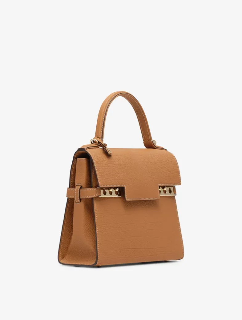 Compact, sculptural bag featuring a removable and adjustable shoulder strap. Crafted in Crispy Calf leather in Vegetal and Ivory. Finished with gold metal hardware.