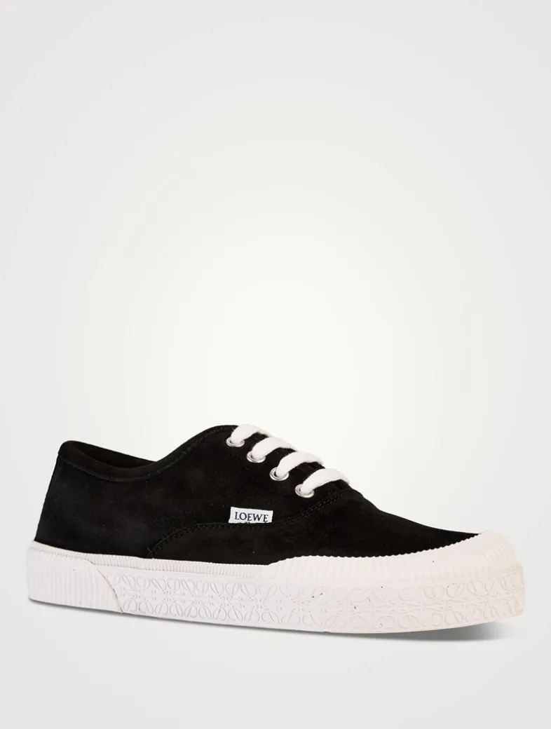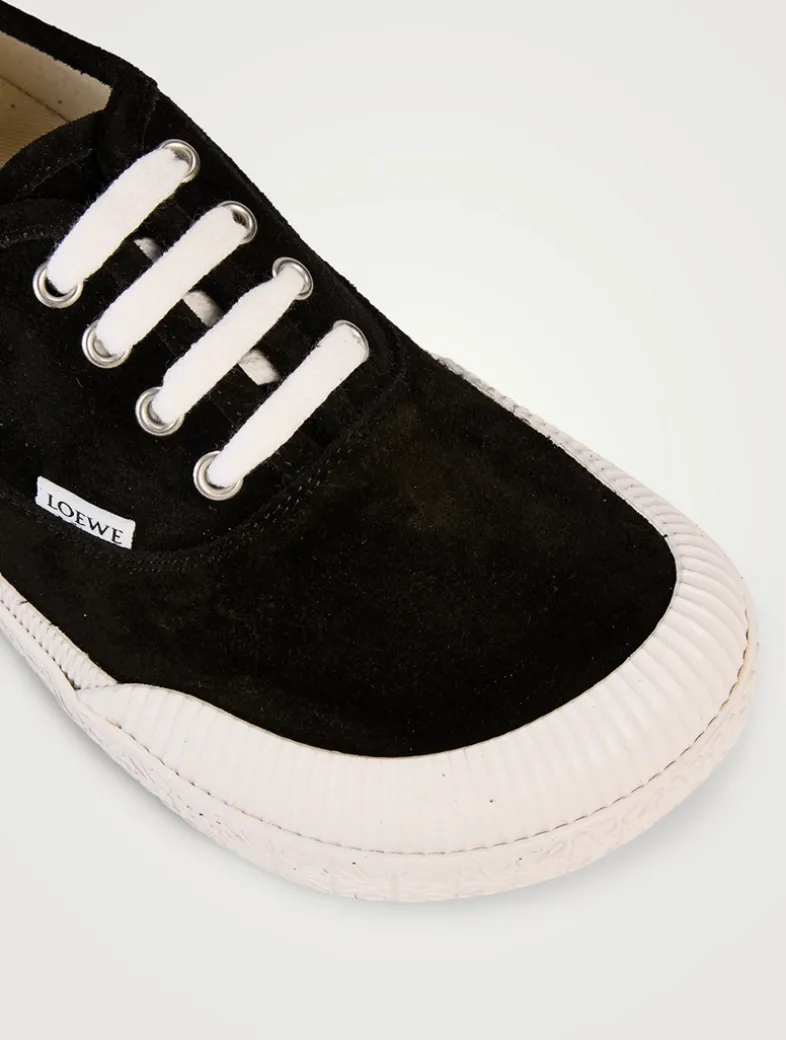 These lace-up sneakers in suede are set on a vulcanised rubber sole featuring a bulky and asymmetric toe shape. Finished with a LOEWE fabric tag on the quarter, and an embossed Anagram outsole and foxing.