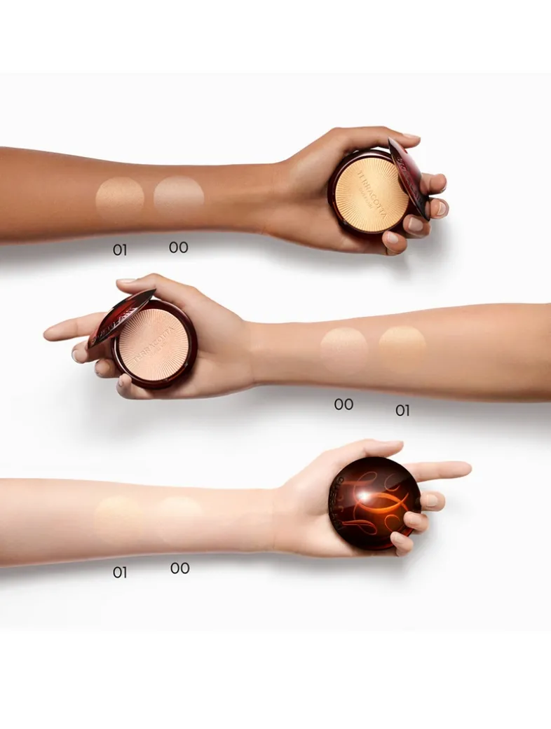 Terracotta Luminizer shimmering powder, formulated with 96% naturally-derived ingredients, reproduces the distinctive, dazzling and sensual light of the golden hour. Its light second-skin texture captures the light to give the complexion a radiant glow. Infused with natural argan oil with moisturising properties, the powder offers long-lasting wear and absolute comfort all day long.