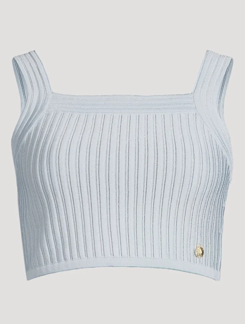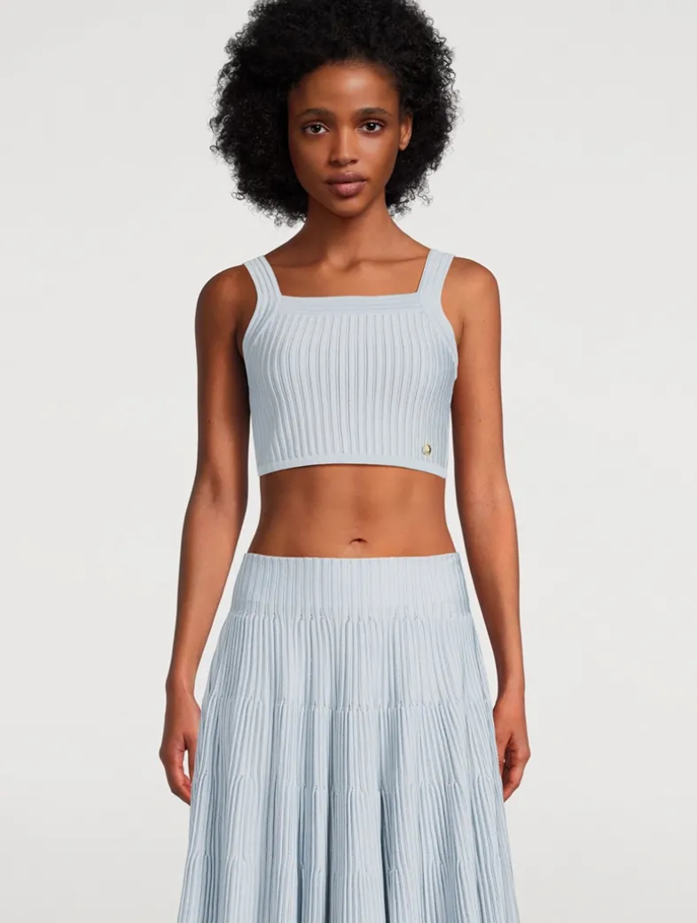 Cut to a cropped length, this fitted tank top has a textured knit design and an exposed gold-tone zip at the rear with a Balmain Paris-engraved slider.
