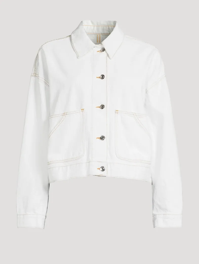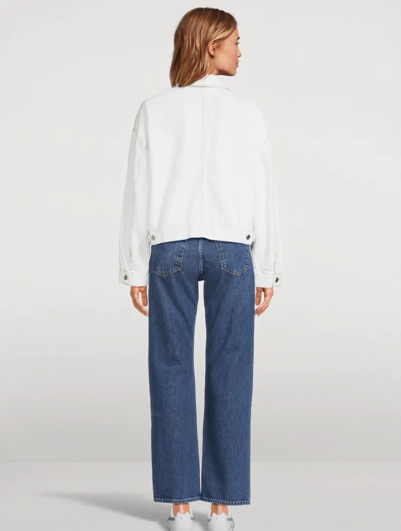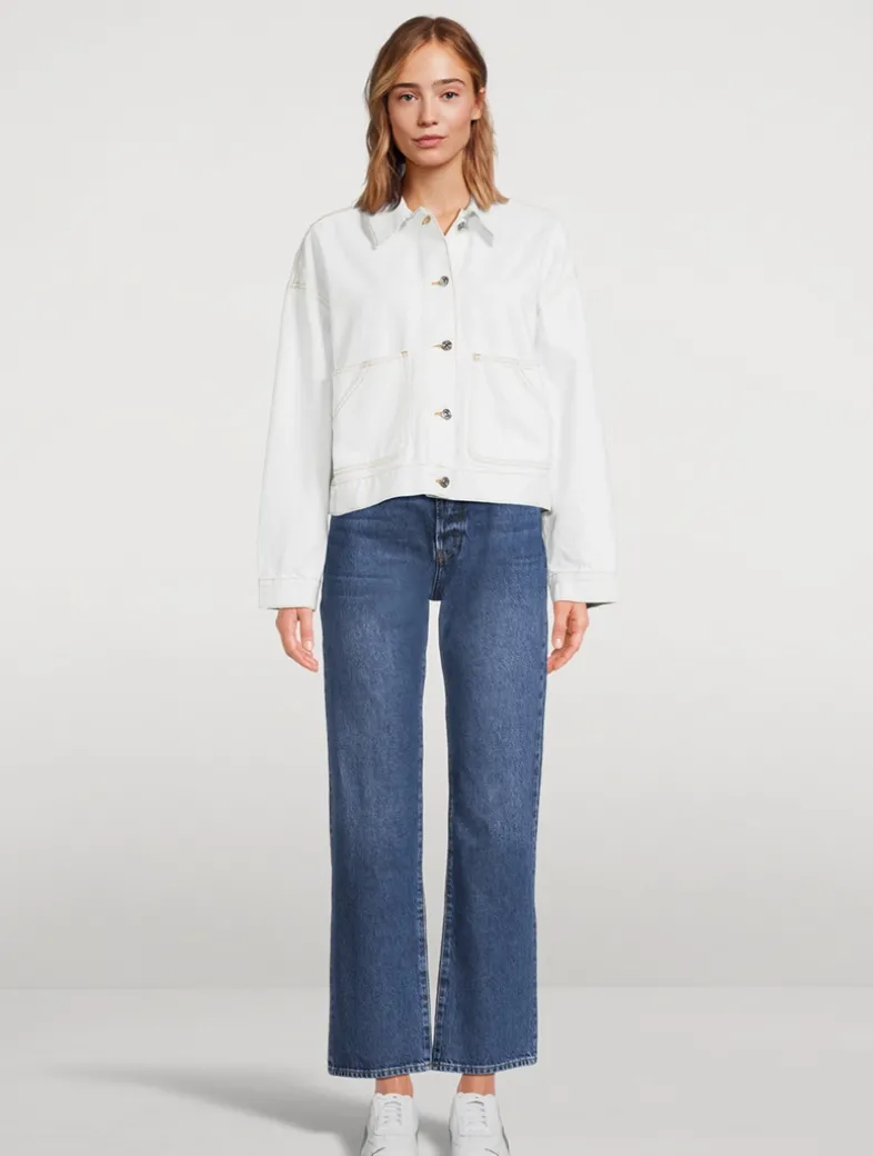 FRAME’s best-selling jacket, now in soft washed denim for the summer season. Crafted from a recycled cotton blend, this cropped, boxy style features silver-tone hardware, tonal patch pockets, and is finished with a soft hand leaving style to compete with comfort.