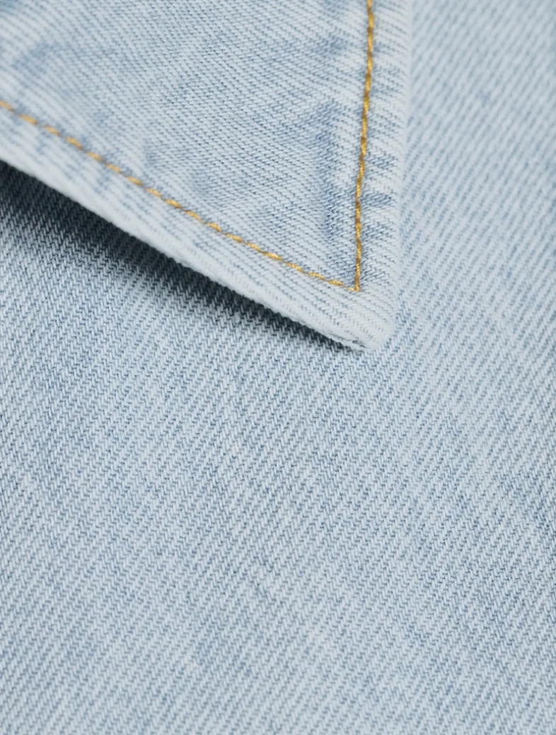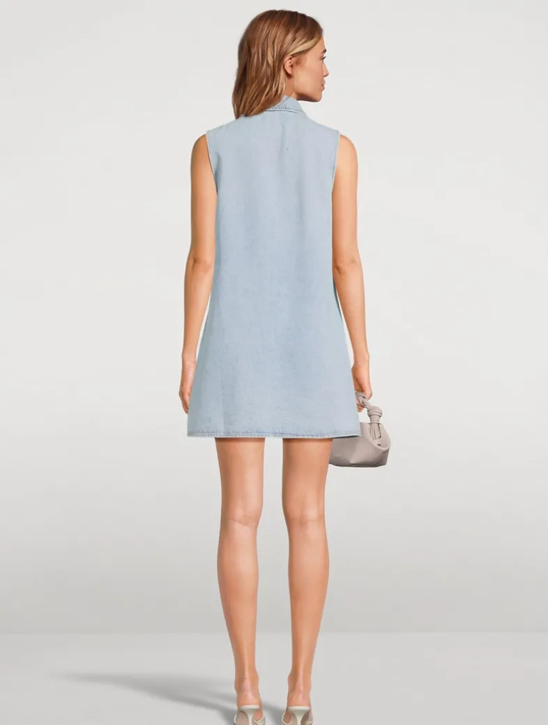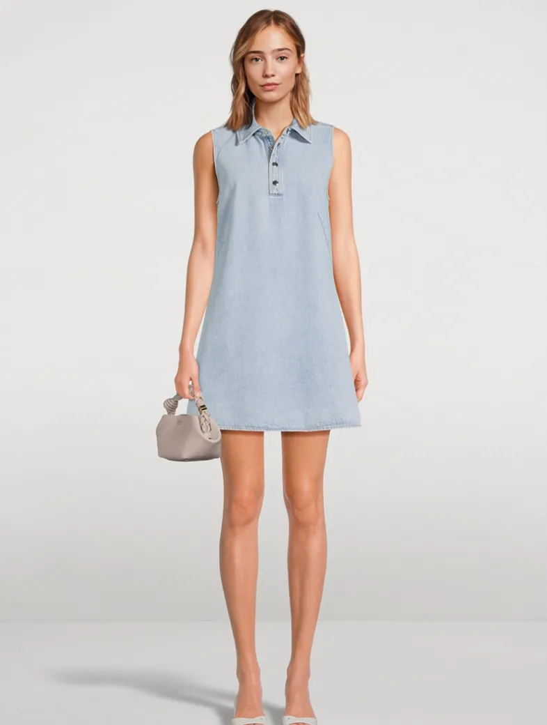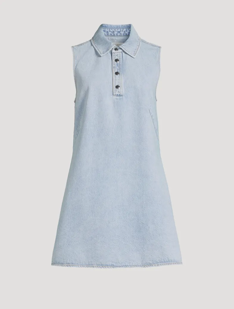 This chic denim dress flaunts a point collar and shiny silver-tone snaps, nodding to polo-inspired styles. What it lacks in stretch, it makes up for in ease, with a relaxed, A-line silhouette that flows in the breeze.