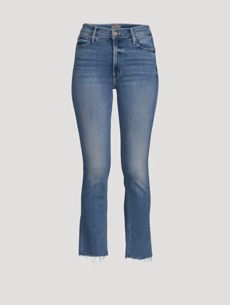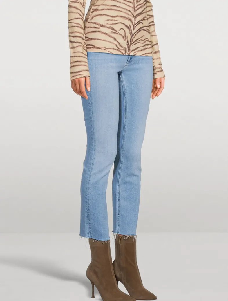 Mid-rise jeans with a straight leg, ankle-length inseam and a frayed hem. Made from stretch denim, Blessing In Disguise is a light-blue wash with subtle fading and whiskering.