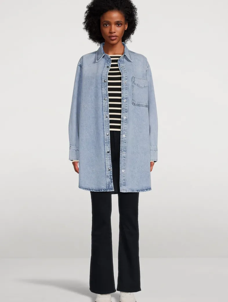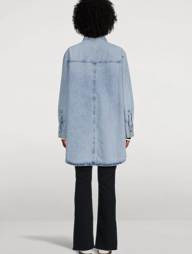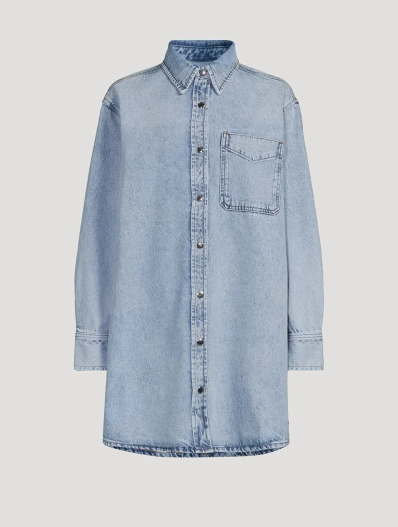 Crafted from a blend of organic cotton denim, this long-sleeve shirt dress has a relaxed silhouette. It is designed with a pointed collar, chest patch pocket, and a buttoned front closure.